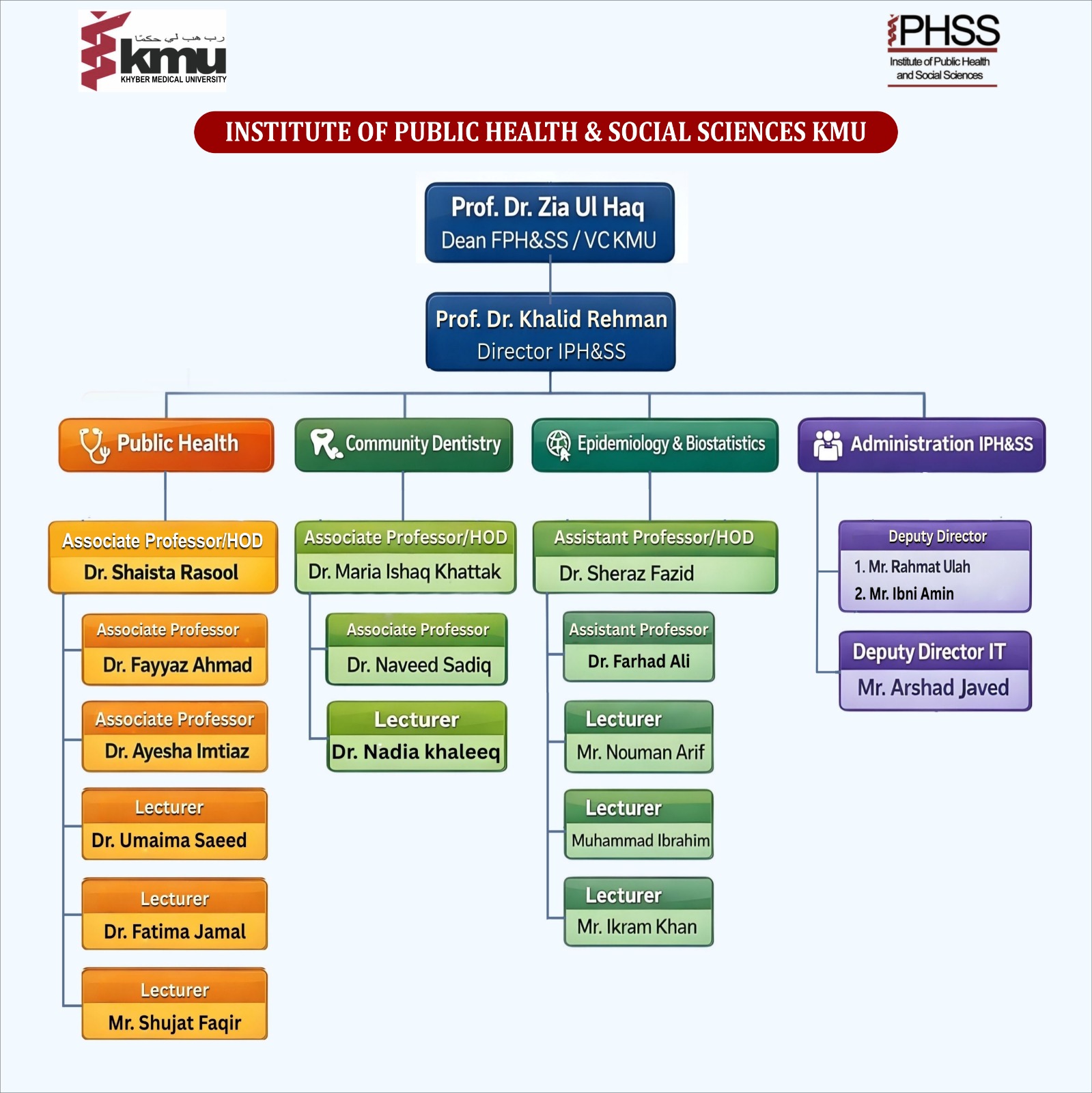 It is with a profound sense of responsibility and commitment that I welcome you to the Institute of Public Health and Social Sciences (IPH&SS) at Khyber Medical University. In a world and a region facing complex health challenges from infectious diseases and maternal-child health to the growing burden of non-communicable diseases and the critical social determinants of health our mission has never been more vital. We are dedicated to safeguarding and improving the health of the people of Khyber Pakhtunkhwa and Pakistan. This is not merely an academic pursuit; it is a national imperative.